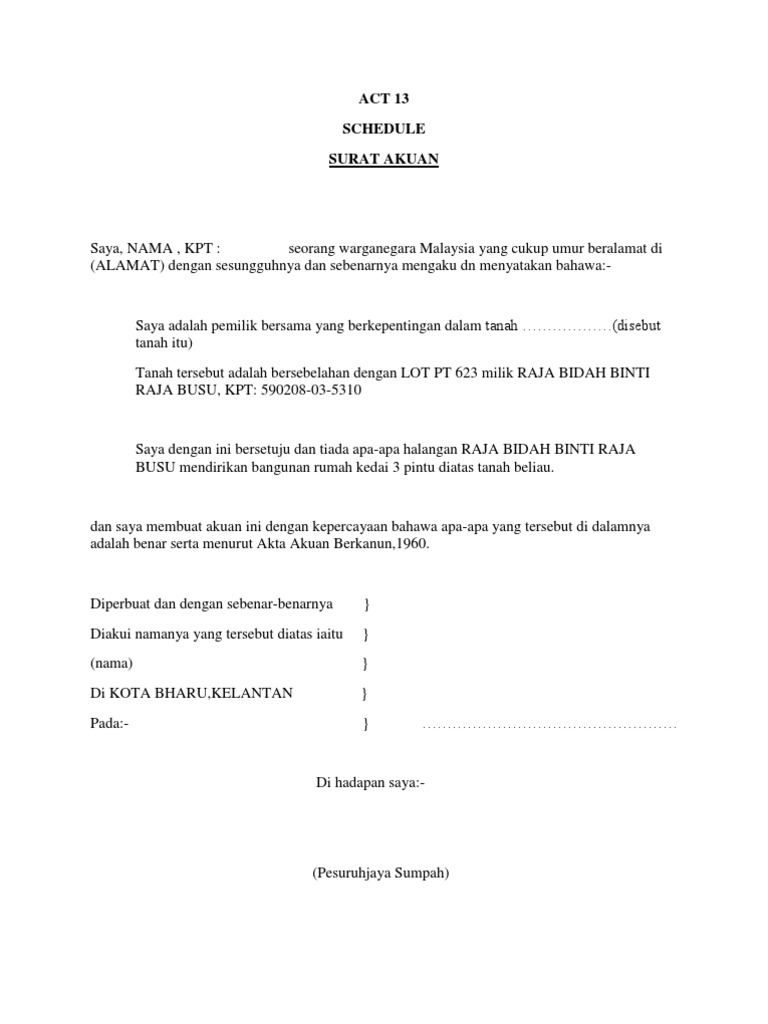 Contoh Surat Akuan Sumpah Berkanun Akta 1960 - Download ... from gambarstatus.com Surat akuan berkanun rahimi yg terbaru. Salah satu surat formal yang sering diterima dan dibuat adalah surat pemberitahuan. Surat rekomendasi adalah suatu surat yang dibuat oleh pimpinan yang berisi tentang keterangan untuk mengutus seseorang baik untuk keperluan tertentu maupun permintaan. Contoh surat kesepakatan bersama dalam hak asuh anak. Salinan template surat akuan adalah di dalam link di bawah. Surat permohonan sendiri dapat bersifat resmi atau pun tidak resmi. Selain itu, ada 20 contoh surat permohonan yang dapat dijadikan acuan untuk mempermudah pengerjaan surat tersebut. Pemegang amanah dalam akuan berkanun.